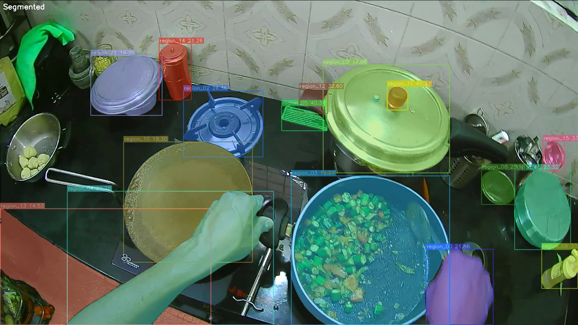 Meal preparation, ingredient handling, utensil manipulation, and cooking workflows in home and commercial kitchens.